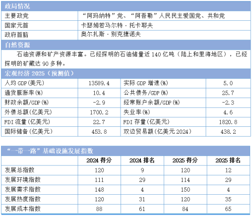 哈萨克斯坦政治局势稳定,为基础设施建设提供了良好的政策预期。近年来,《2029年前国家基础设施计划》《电力行业发展规划(2035)》《2030年前哈萨克斯坦运输和物流潜力发展构想》《2025-2040年石油加工业长期发展规划》等政策相继出台,推动电力、交通、石化等领域基础设施稳步发展。未来,该国将加速推进电网现代化、可再生能源并网、跨里海运输走廊节点升级及高附加值石化项目落地,基础设施行业发展前景广阔。