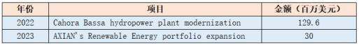 表 1 2022-2023年莫桑比克电力能源领域新增私人投资(部分)